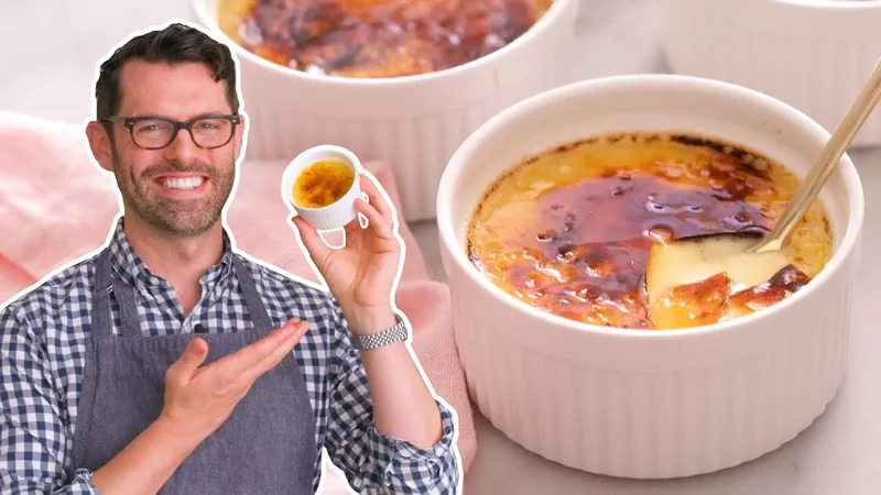 Через это время, посыпать поверхность крема сахаром и поместить на 3 мин под раскалённую в духовке грильную спираль. Если есть возможность, то лучше использовать blow torch (специальный инструмент для "обжигания" крем-брюлле).