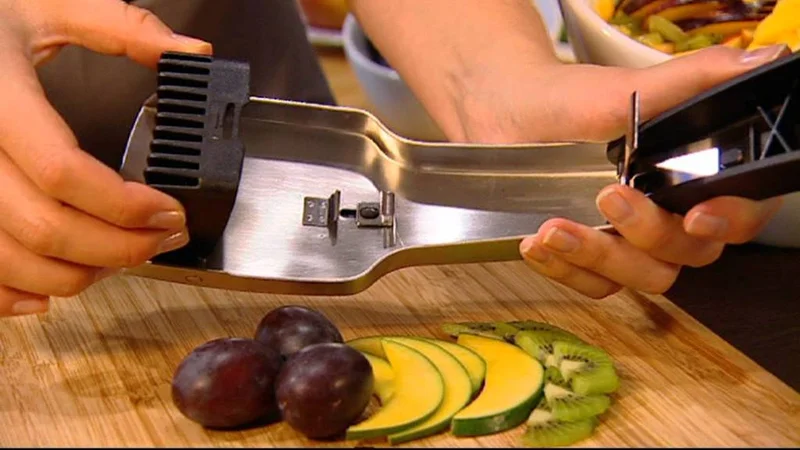 Ну, вообще, не надо забывать, что стоит она практически пшик. Но вот я сейчас села в уголку (типа бедная я и ничо у меня нету, кроме снапа этого), обложилась овощами и все так душевненько пощелкала на борщ и салат (огурцы, свеклу, морковку, редиску- такими аккуратненькими брусочками). Редиску целую запихувала, огурцы резала на бочоночки, свеклу и морковку на кружочки, но не тонкие... Вообщем, буду держать для этого. Мне понравилось. Ну вот за 400 гр, как в ТИВи шопе я бы точно такую не купила, он для таких денег слишком хлипкий.