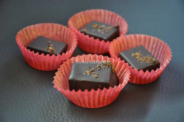 Облить каждую заготовку темперированным шоколадом, поддерживая его рабочую температуру. Удобно опускать каждую заготовку в шоколад на вилке, стряхивая излишки шокодада постукиванием вилки о край миски. Готовые конфеты выкладывать на силиконовый или пергаментный лист. Можно декорировать незастывший верх с помощью кусочков какао-бобов или других «подручных средств»