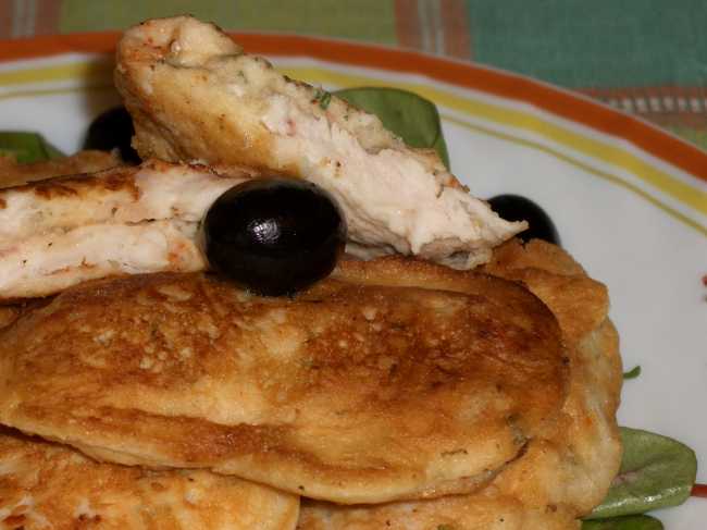 Отделить желтки от белков. Желтки, майонез, воду, муку, соль взбить венчиком до однородности. Взбить белки до густой пены. Добавить белки в тесто и осторожно перемешать. Тесто получается как на блины. Белки добавить в тесто перед самым выпеканием, чтобы оно оставалось пышным.