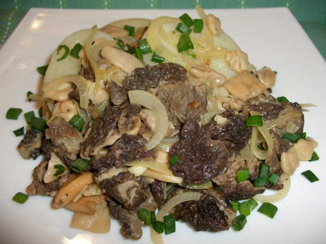 Следует иметь ввиду, что в сморчках очень много песку, поэтому их следует хорошо, но осторожно (чтобы не поломать, хрупкие очень) промыть в воде, затем отварить быстро – тогда остатки песка уйдут с водой.