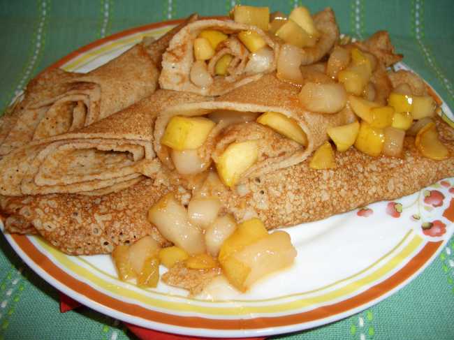 Подаем блины со сметаной и/или с сальсой из яблок и груш.