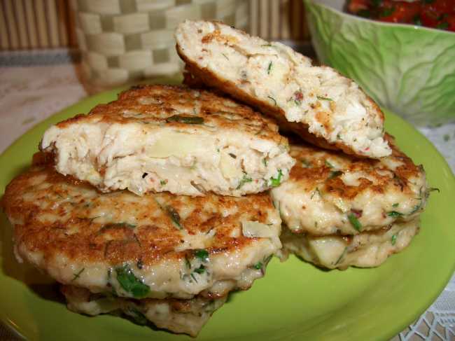 Взяла мясо куриного филе и стейки из свиного карбоната. Свинину смолола в блендере, куриные филешки мелко порубила ножом. Получилось так же вкусно!
