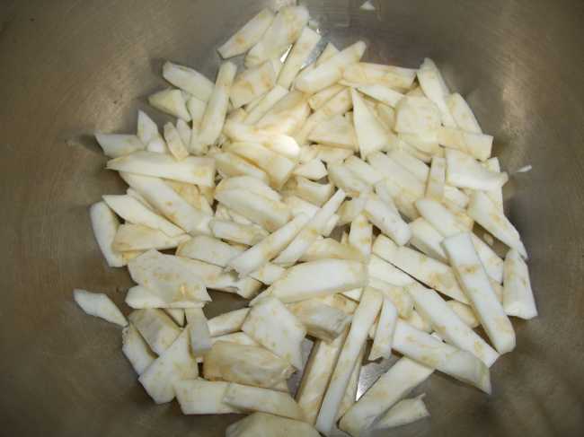 Добавить картофель, соль, воду чтобы только покрыть овощи и отварить до готовности овощей, слить воду.