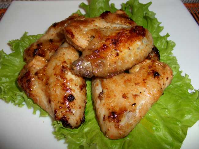 Готовые крылышки подавать к столу горячими и с овощным легким салатом.