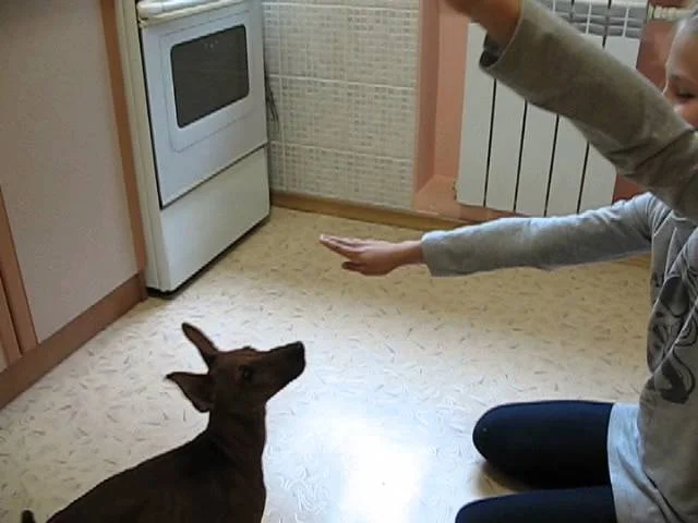 Цвергпинчер Зетта (3 месяца) выполняет команды