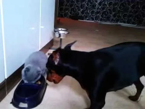 Цвергпинчер (пинчер карликовый / миниатюрный) ЗЕНА и кот едят