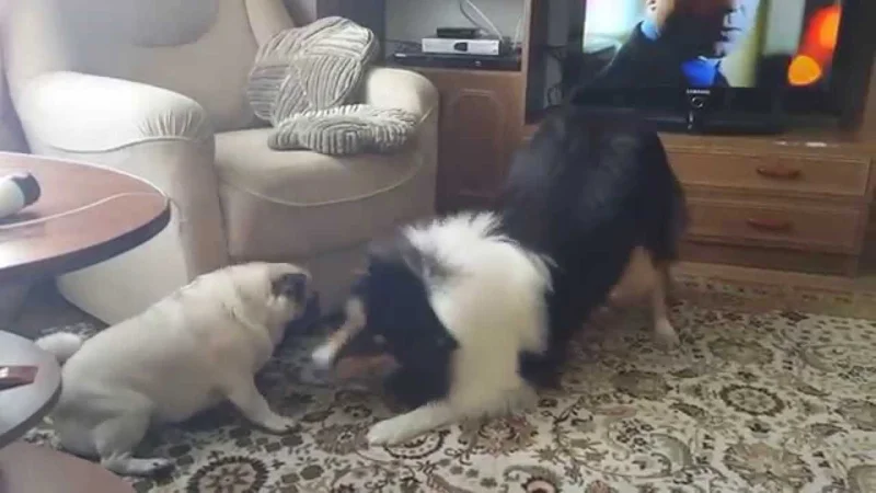 Колли у нас обожает глумиться над мопсом, а той нраааавится Вообщем, играют только друг с другом, с посторонными собаками в лучшем случае могут в догонялки побегать