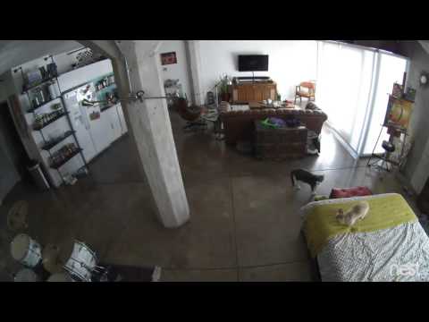 видимо, кот внимательно смотрел ролики Цезаря Милано - те же телодвижения и взгляд, и пёсик так же реагирует - сразу и молча