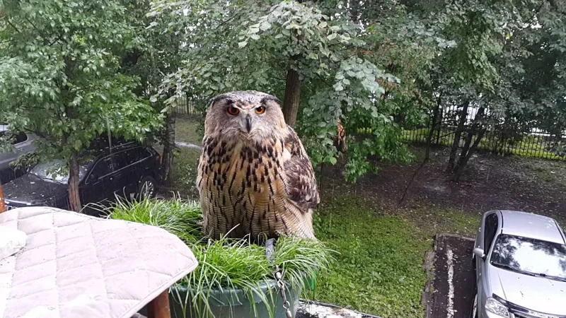 Вам надо во такого «зверя» завести, чтоб под дождем гулять....Ха, прикольный какой. Вот уж не думала, что птица по собственной воле может захотеть сидеть под дождём.