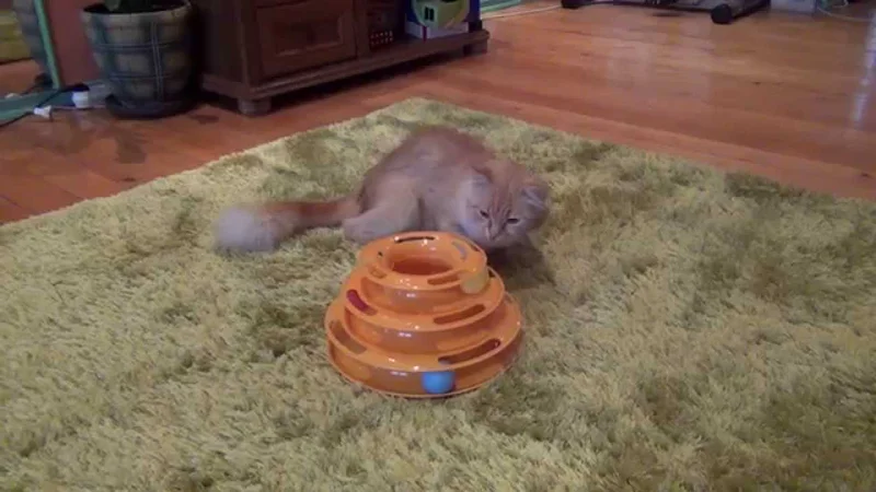 Гоша скоро отошел, а малец кааак начал сам шарики гонять, и вот так же, как и в ролике - они все заглядывают внутрь пирамидки, когда шарик укатывается из поля видимости