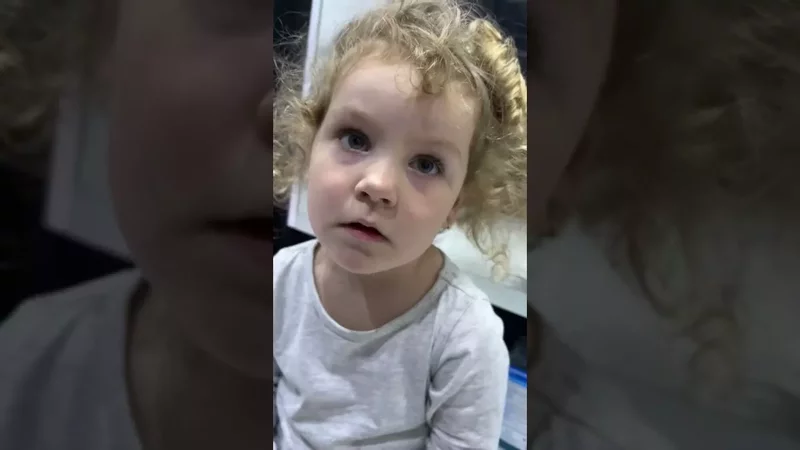 И вот мы надели ей впервые. Кроха. Ей не нравятся очки. Очень чувствительная была, чуть что в слезы. Уговаривали.