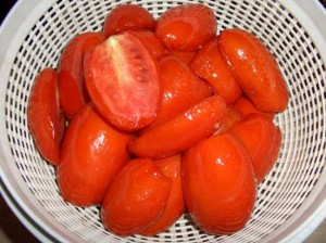 Вынимаем томаты в дуршлаг, сок полученный отсоединяем от томатов