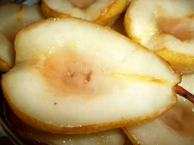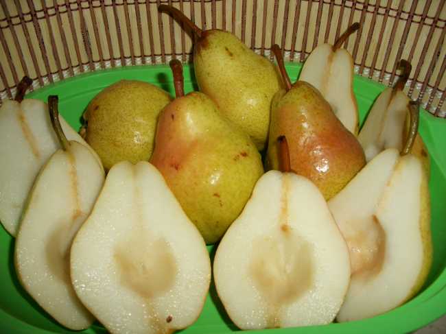 Груши помыть, почистить, разрезать пополам. Каждую половинку наколоть в нескольких местах.