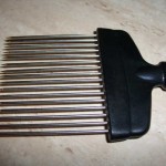Я использую вот такую гребенку (предполагалось использовать для нарезки репчатого лука), зубья гребенки острые и хорошо, быстро накалывают фрукты.