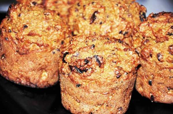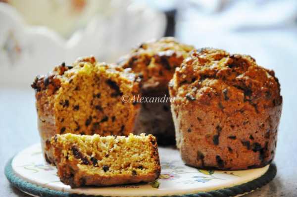 : Сочные ароматные маффины с тыквой, белым шоколадом и кусочками какао-бобов на цельнозерновой муке; без сахара