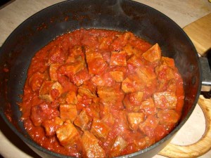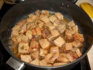 Патриссия достала мясо из холодильника, в оберточной бумаге, и нарезанное уже кусочками. На мой вопрос, а сколько по весу она взяла мяса, Патриссия откровенно сказала – не знаю, я попросила мясника нарезать мне мяса на семь человек, мясник столько мне и взвесил!