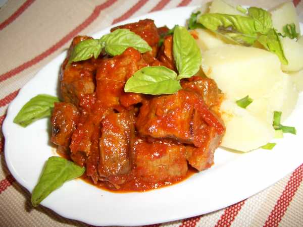 Мясо готовится с сухим белым вином, и томатами, но назвала я рецепт "Говядина по-тоскански", по местности в Италии, где живет Патриссия.