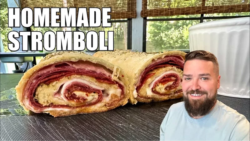 Хлеб Стромболи - это один из разновидностей итальянского хлеба фокаччо. При выпекании тесто прокалывают шампурами, из-за чего оно "извергается" из отверстий как вулкан*. /Дженни Шаптер/