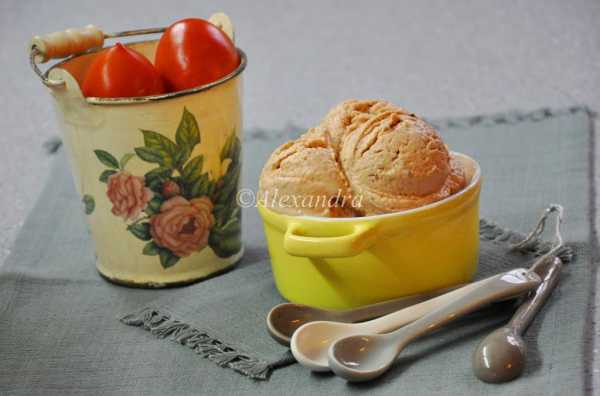 Необычное мороженое без сахара и жиров на основе обезжиренного творога. Сочетание слив и томатов плюс набор «пряничных» специй — ямайский перец, корица, мускатный орех, ваниль