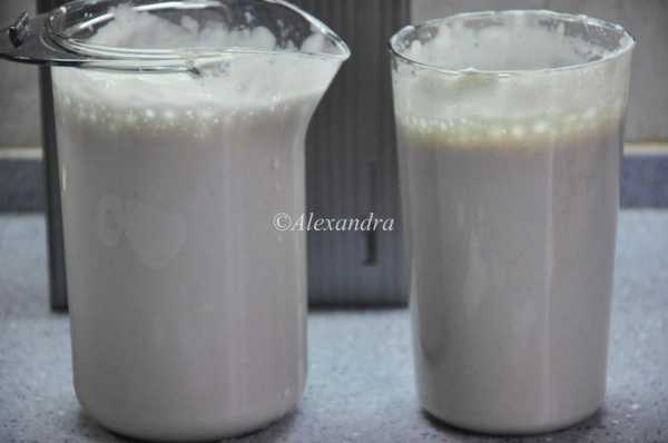 Моя, конечно, не была такой плотной, чтобы не выливаться из стакана при переворачивании, но тем не менее, из 500 г молока, предусмотренных в моем рецепте, получилось так много объемной пены, что пришлось разделить смесь на 2 порции.