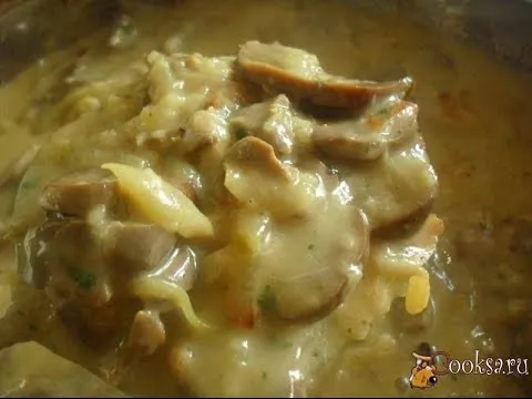Говяжьи почки в сметанно луковом соусе с солеными огурцами play thumbnailUrl Почки говяжьи, тушеные со сметаной
