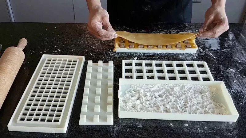 В ролике все красиво и быстро. Но вот КАК заложить в ту рамочку фарш в нужные ячейки??? Это не показано.
