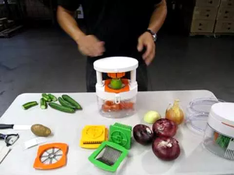 Очень довольна как слон! удобная добротная штукенция, только дороговата, но какчество это да! лезвия у них такие интересные не ровное как у обычного ножа, а зубчиками мелкими такими, режет мелкими (5мм) ломтями только правда, но я приноровилась и очень быстро в три движения делаю кубики!