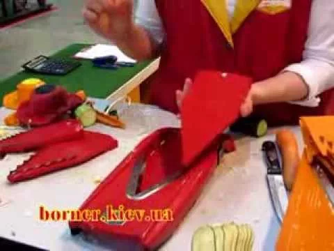 В статусе, что режет ломтиками/слайсами - это тёрка типа бернера, только чуть видоизменные лезвия. Надо овощем водить туда-сюда по лезвиям в держателе. Это совершенно отдельный вид агрегата.