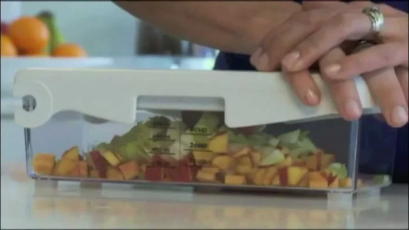 Да именно так, но можно и без контейнера. А сам продукт перед аллигатором я резала на горизонтальные ломтики, для получения кубиков.