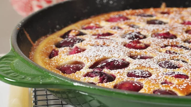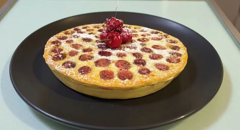 Яйца взбить с сахаром, посолить, добавить молоко, высыпать муку, ванильный сахар, мешать до полной однородности теста. Я это делала миксером. Тесто вылить на вишню.