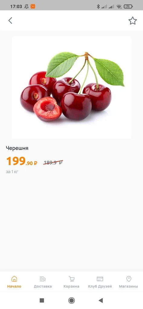 В Дикси черешня по 100 р, пишут, что акция аж до 27 числа, на вид приличная, относительно крупная, но я её не пробовала,Посмотрела в приложении, странную скидку показывает![]()