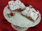Вытаскиваем корж, выкладываем клубничку, и замазываем всю эту красоту белками ))) , в духовку еще минут на 15 , смотрите по состоянию белков, у меня они получились розоватые чуть и крепкие!))
