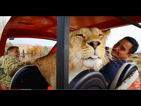 Львица автомобилист КАТАЕТСЯ на МАШИНКЕ! Lioness rides a car!