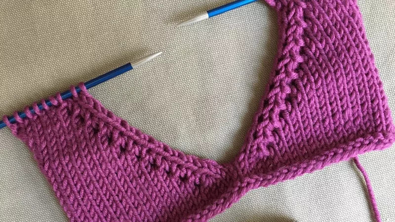 И петельные столбики на основной части будут идти в одну сторону, а на довязанном позже тылу — в противоположную.