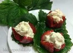 Аккуратно разгибаем четвертинки клубники, и вкладываем в брынзу внутрь.