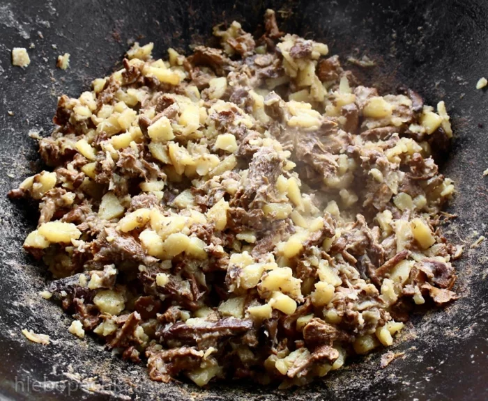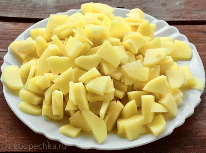 А потом наступает очередь картошки. Высыпать ее в казан.