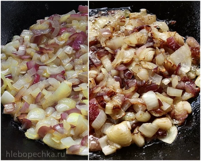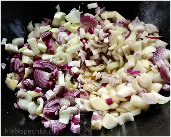 И сразу же в казан лук высыпал. Можно было даже его слегка помять. Но ... можно и не делать такого. Я, например, не стал.