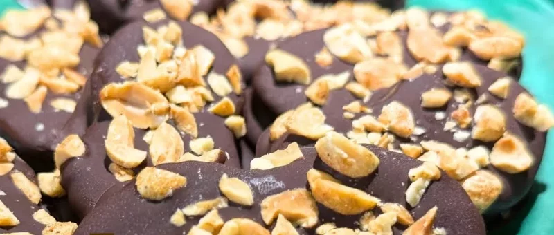 Соленый арахис крупно порезать. Я раздавила через бумагу скалкой.