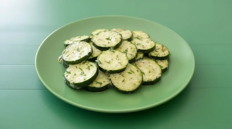 - Сметану (майонез) смешать с мелко порубленным чесноком и смазать сверху кружочки кабачка.