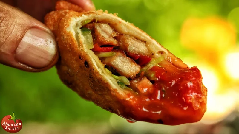 роллы, которые сделаны 100% с нуля в лесу! супер хрустящие ручной тесто, пряное, сочное мясо, свежие органические овощи и специальный соус из вишни мы собирали в нашем лесу