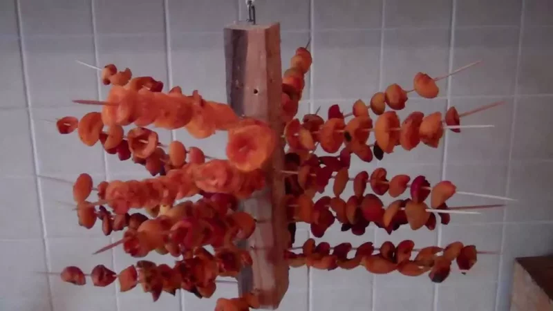 Самодельная сушилка для грибов, яблок из бамбуковых шпажек.
