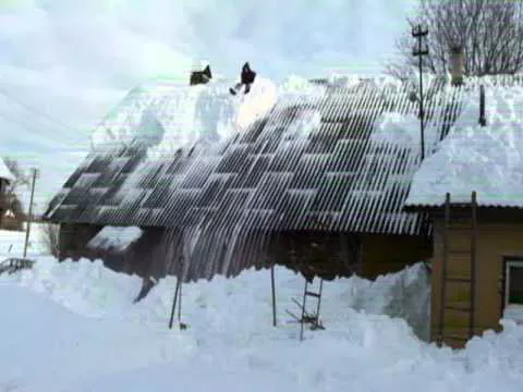 Как написано в название ролика - дешевый способ сброса снега с крыши.