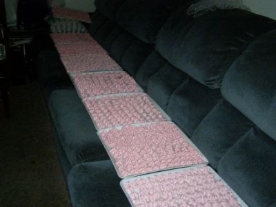 Тогда нужно застелить подносы, или если их нет, стол пищевой плёнкой (это обязательно) так как оно будет клеиться