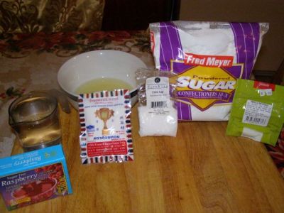 Холодная вода, Агар, сахарная пудра, холодные белки, джело без сахара, лимоная кислота и ванилин.