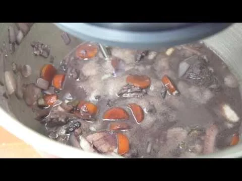 Мясо гоняет по бортику. Хотя, когда лук добавила, то получше стало мешать. Очень странная штука. А вам как? С 2.50 смотреть. И потом еще пару раз показывает.