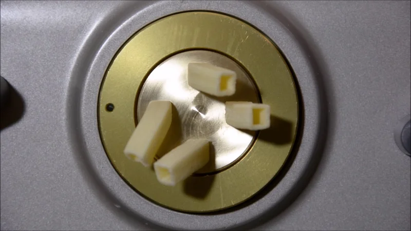 На видео на этой нарезалке просверлена дырка посередина и стоит саморез-шуруп.., т. е он прикручивается скорее всего к основанию либо к адаптеру. А оригинальной нарезалке этого нет.