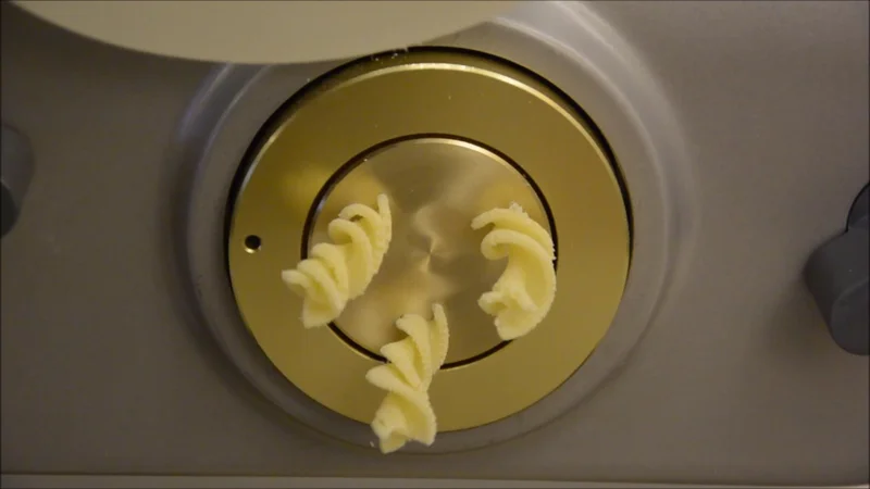 Кружусь я вокруг паста-машин, и никак не решусь. Потому что хочется, чтобы всякие спиральки и прочее фигуристое выдавало плотным и не разматывалось. А так получается при правильном тесте, медном шнеке и медных матрицах, чтобы давление было большое. В принципе, если Филипс дополнить переходником и другими матрицами, то вроде ничего получается.