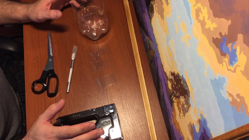 Для рабочих принадлежностей вырезала поддон из пластиковой бутылки. Держу его на коленях перед планшетом: