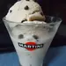 Охладившийся глазированный стаканчик заполняем на треть мороженым. В середину кладем кусочек клубничной начинки. Начинку слегка вдавливаем в мороженое.
